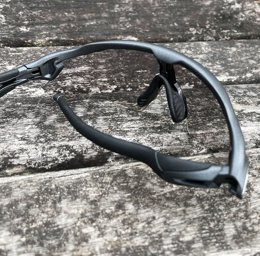 A ponta das hastes e nosepads (narizeiras) do Óculos Oakley Radar EV Path Matte Black/Photochromic Iridium conta com tecnologia Unobtainium®- muito mais macia e aderente junto ao nariz e parte posterior da cabeça, mesmo com uso por cima das cintas jugulares do capacete de ciclismo, mantendo a segurança nas trepidações mais elevadas e sob altas condições de umidade.