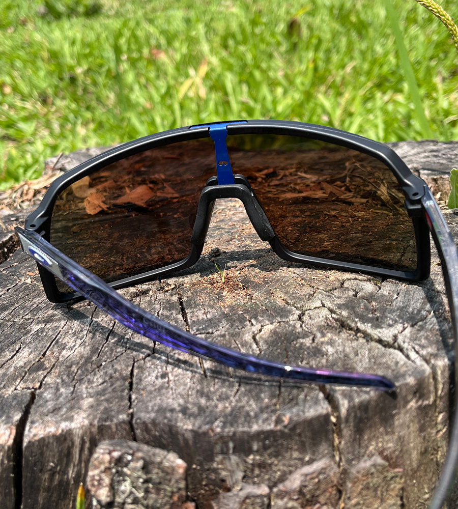 Óculos Oakley Sutro possui construção da ponta das hastes e nosepads (narizeiras) com tecnologia Unobtainium®- muito mais macia e aderente junto ao nariz e parte posterior da cabeça, mesmo com uso por cima das cintas jugulares do capacete de ciclismo, mantendo a segurança nas trepidações mais elevadas e sob altas condições de umidade.