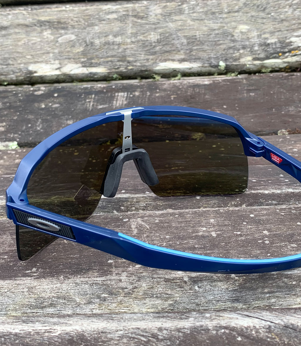Óculos Oakley Sutro Lite possui construção da ponta das hastes e nosepads (narizeiras) com tecnologia Unobtainium®- muito mais macia e aderente junto ao nariz e parte posterior da cabeça, mesmo com uso por cima das cintas jugulares do capacete de ciclismo, mantendo a