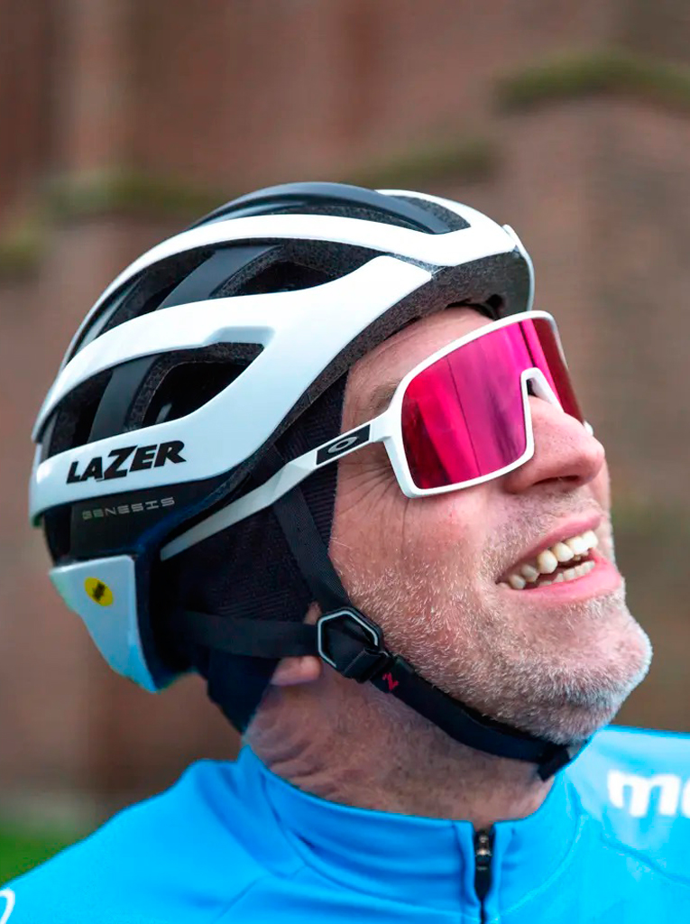 Óculos Oakley Sutro possui construção da ponta das hastes e nosepads (narizeiras) com tecnologia Unobtainium®- muito mais macia e aderente junto ao nariz e parte posterior da cabeça, mesmo com uso por cima das cintas jugulares do capacete de ciclismo, mantendo a segurança nas trepidações mais elevadas e sob altas condições de umidade.