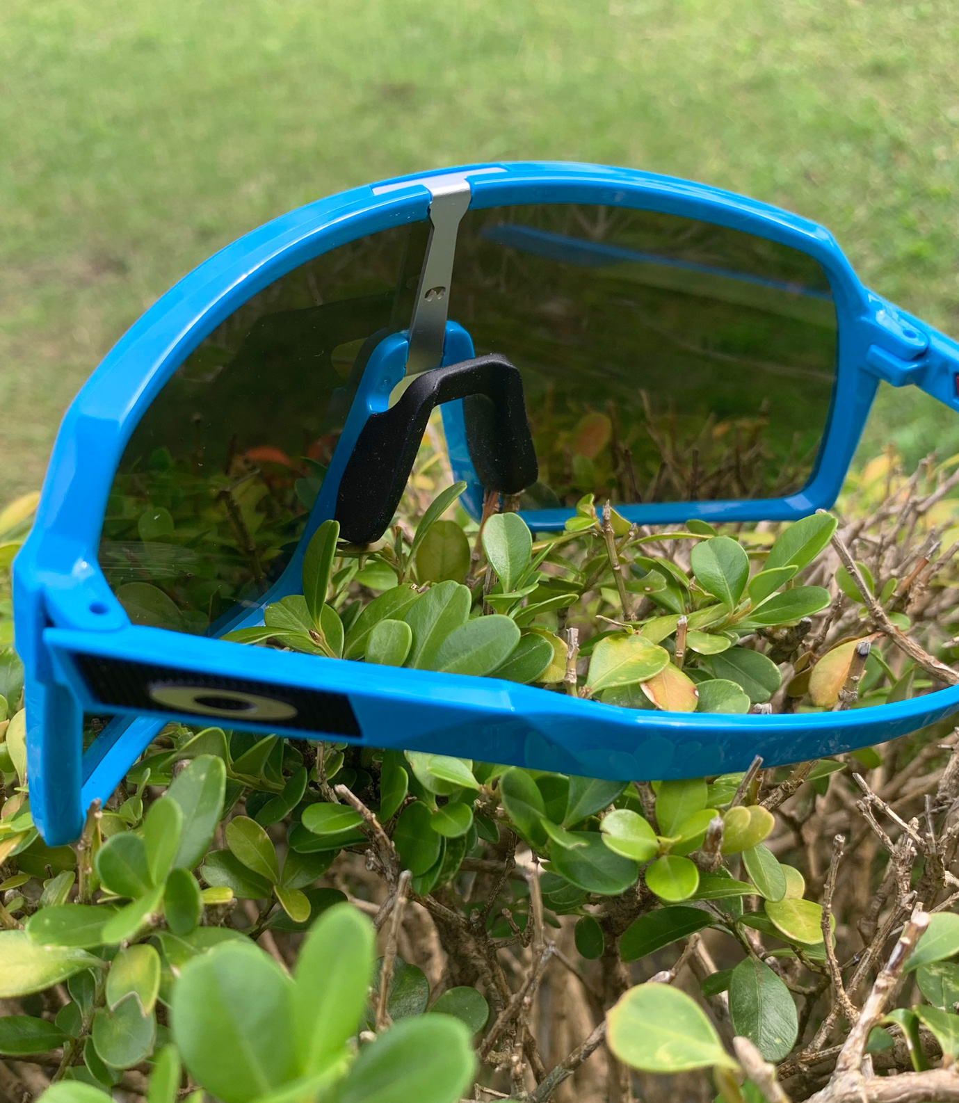 Óculos Oakley Sutro possui construção da ponta das hastes e nosepads (narizeiras) com tecnologia Unobtainium®- muito mais macia e aderente junto ao nariz e parte posterior da cabeça, mesmo com uso por cima das cintas jugulares do capacete de ciclismo, mantendo a segurança nas trepidações mais elevadas e sob altas condições de umidade.