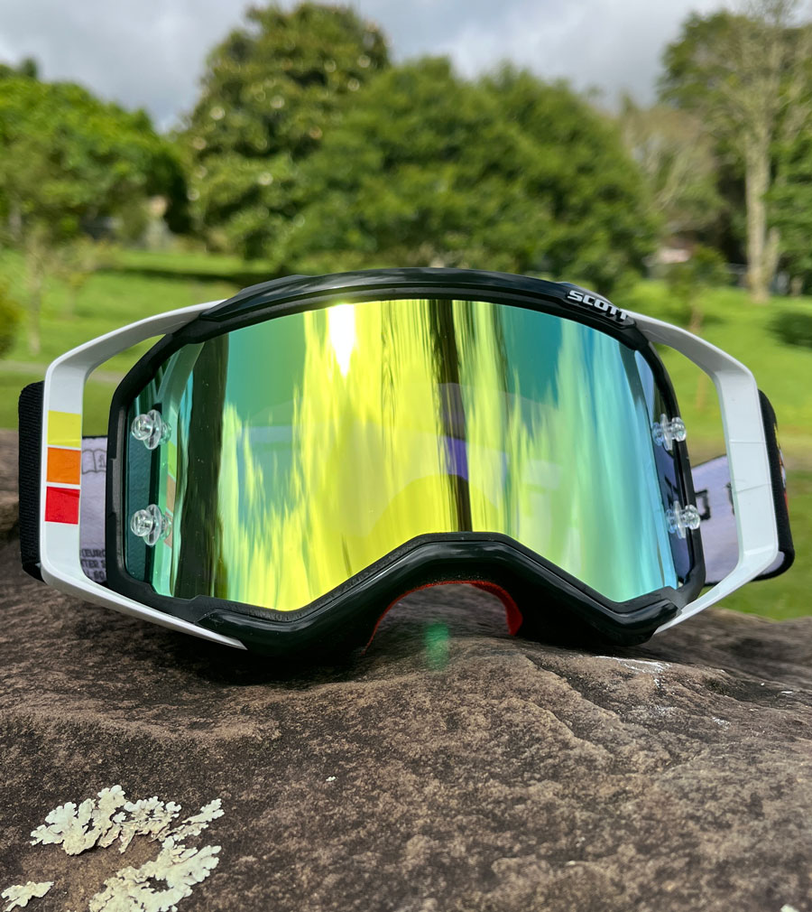 Garanta alta qualidade para sua pilotagem com o Óculos Scott Prospect Pro Circuit White-Black/Yellow Chrome Works