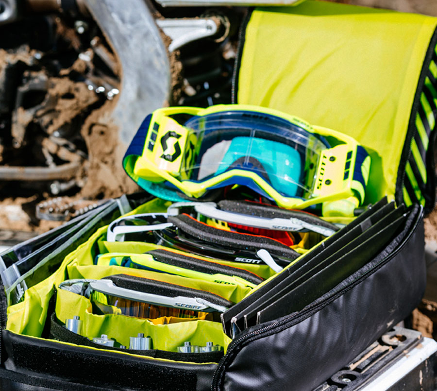 Porta Óculos Scott Preto/Amarelo Flúor, possui dois bolsos  exclusivo para lentes que oferecem maior segurança das lentes mais delicadas, sem causar riscos ou bolhas. Além disso, a case possui um espaço para o piloto guardar seus roll offs e/ou acessórios de sua necessidade.