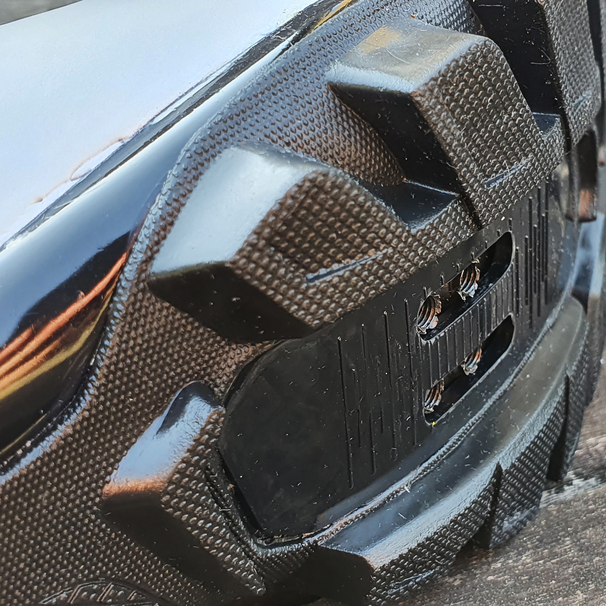 • Espaço extra para travas - Dois espaços na ponta dos pés, possibilitam encaixe de travas para caminhar em locais mais ingrime ou com muita lama