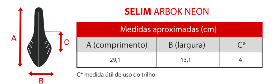 Ideal para os ciclistas que buscam performance, mas sem deixar de lado o confoto, o Selim Arbok Neon proporciona conforto para andar de bicicleta em diferentes modalidades de mountain bike - MTB ou nas estradas, com performance garantida.